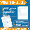 - Student templates for structured reading response writing